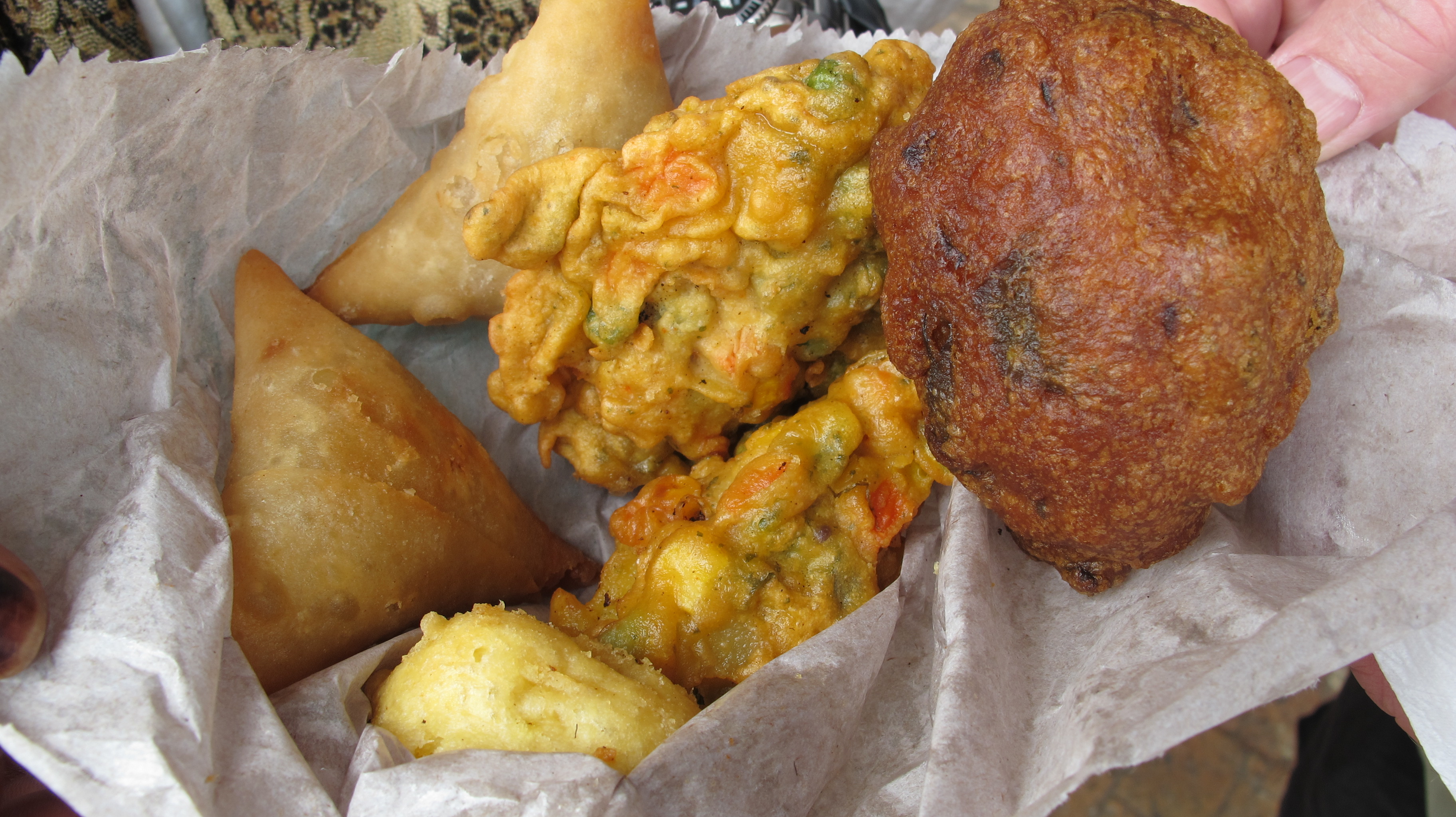 We finally walked uphill to the local take-away-grocery store and restaurant, Biesmiellah, to try some local snacks including samosas, dhaltjies (deep-fried chickpea balls with potato, coriander and spinach similar to the Indian pakoras) and koeksisters (Dutch style cinnamon sugar coated deep fried cake-like dumplings covered in dried coconut).Later, after exploring more of Bo-Kaap, we returned to Biesmiellah restaurant to have lunch.The menu had mostly Indian Muslim dishes with a few Cape Malay dishes. Mutton, fish and chicken curries, beef, kebabs, steak platter, breyanis, butter chicken and chicken tikka were served.