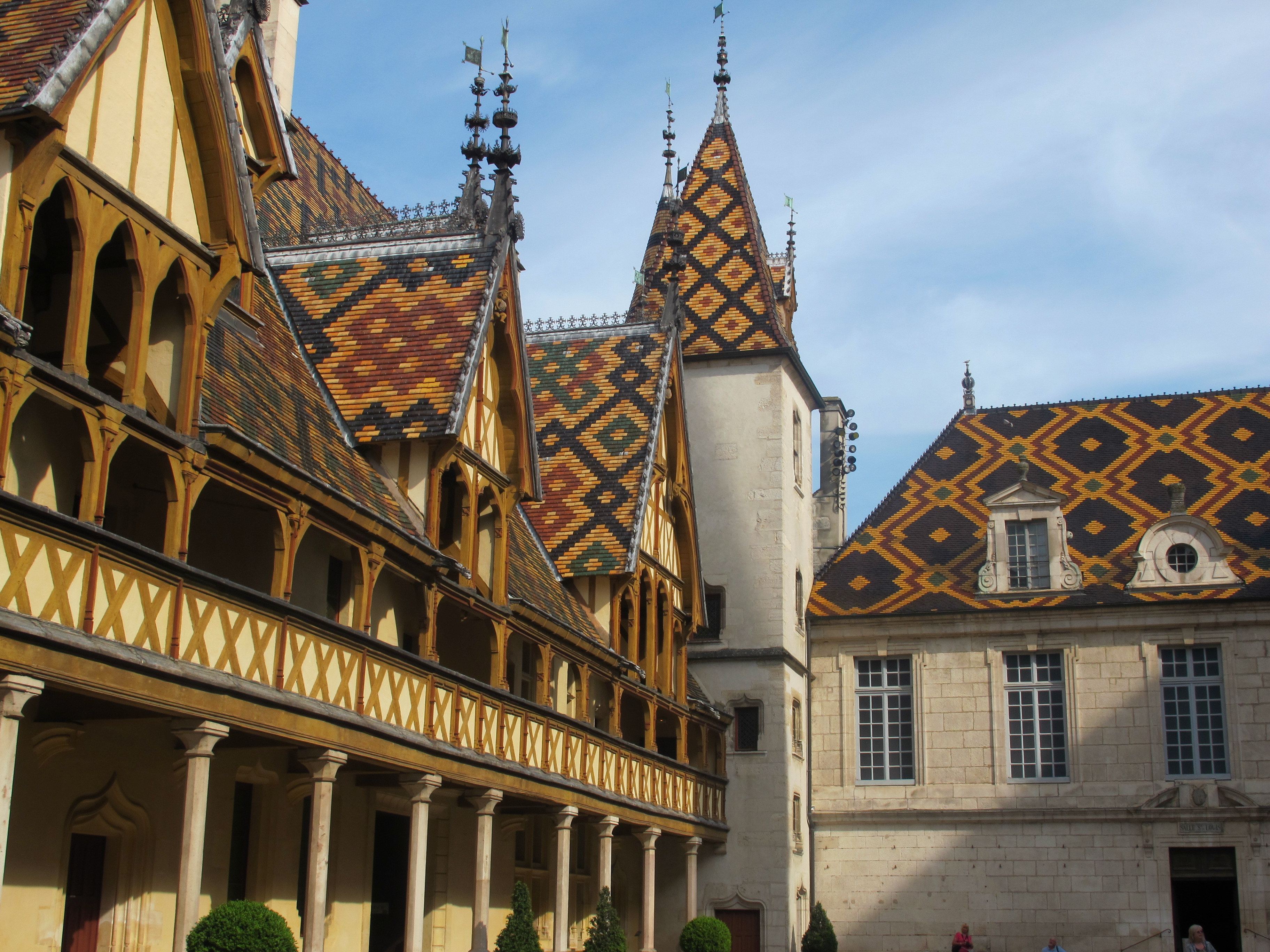 Beaune is noted for its wines but we did not have time to do wine tasting. We visited Hotel-Dieu des Hospices de Beaune, a 15th century hospice built in 1443, referred to as a ‘palace for the poor’. As I stepped into the courtyard of this hospital, I was impressed with its gorgeous turrets and rooftops covered with multicolored tiles. The rooms have beautiful paintings and murals and an 18th century pharmacy.