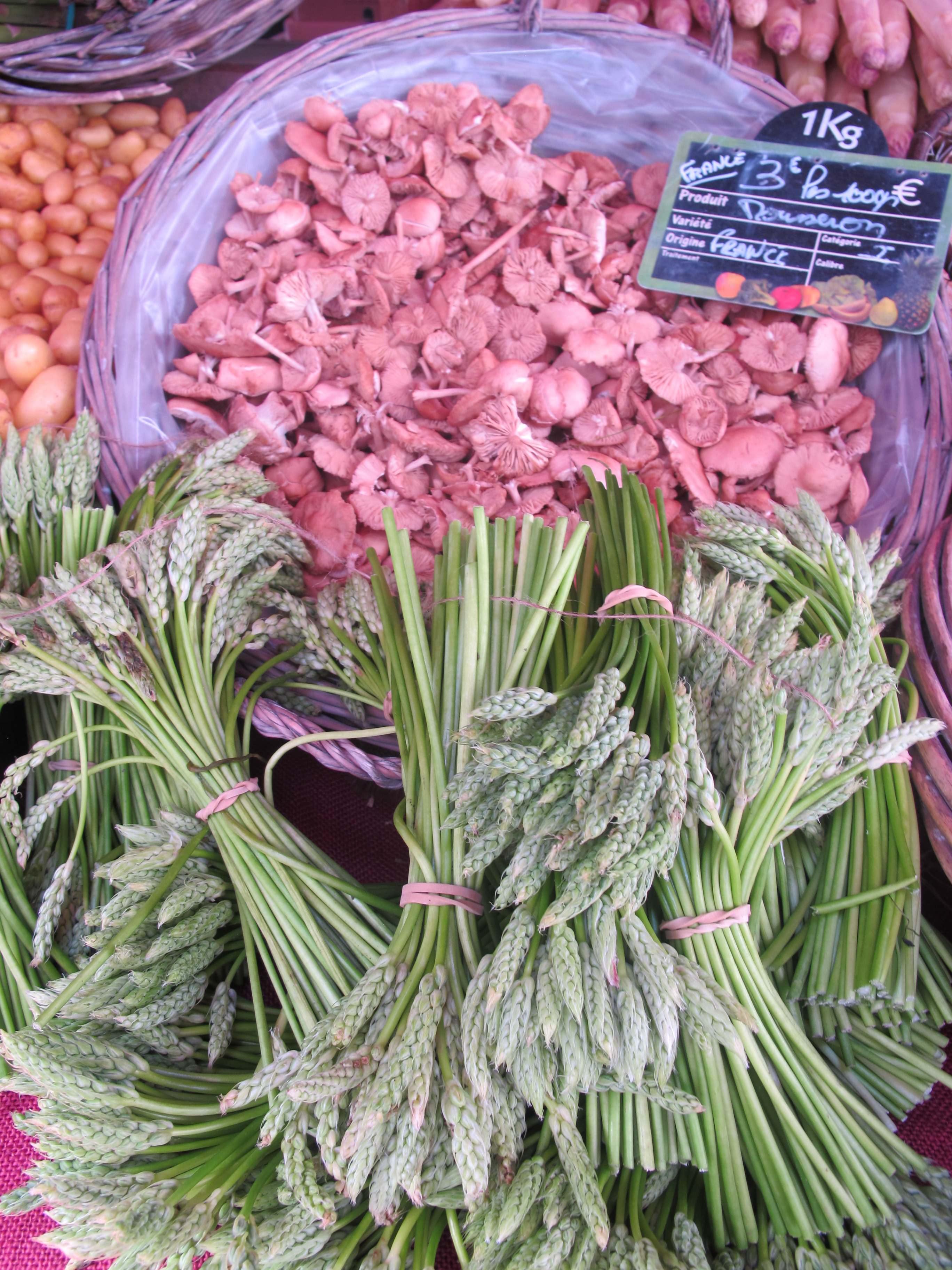 Then we stepped out and walked into a market. We walked around and looked at the fresh produce and gourmet items on display. I was particularly interested in the local mushrooms and cheeses…what a variety they had…and some that I had no idea of. So I eagerly tasted some of the samples were handed out. After walking around, the colorful flavored mustards caught my eye and I bought some to take home …as well as some of the local spices.