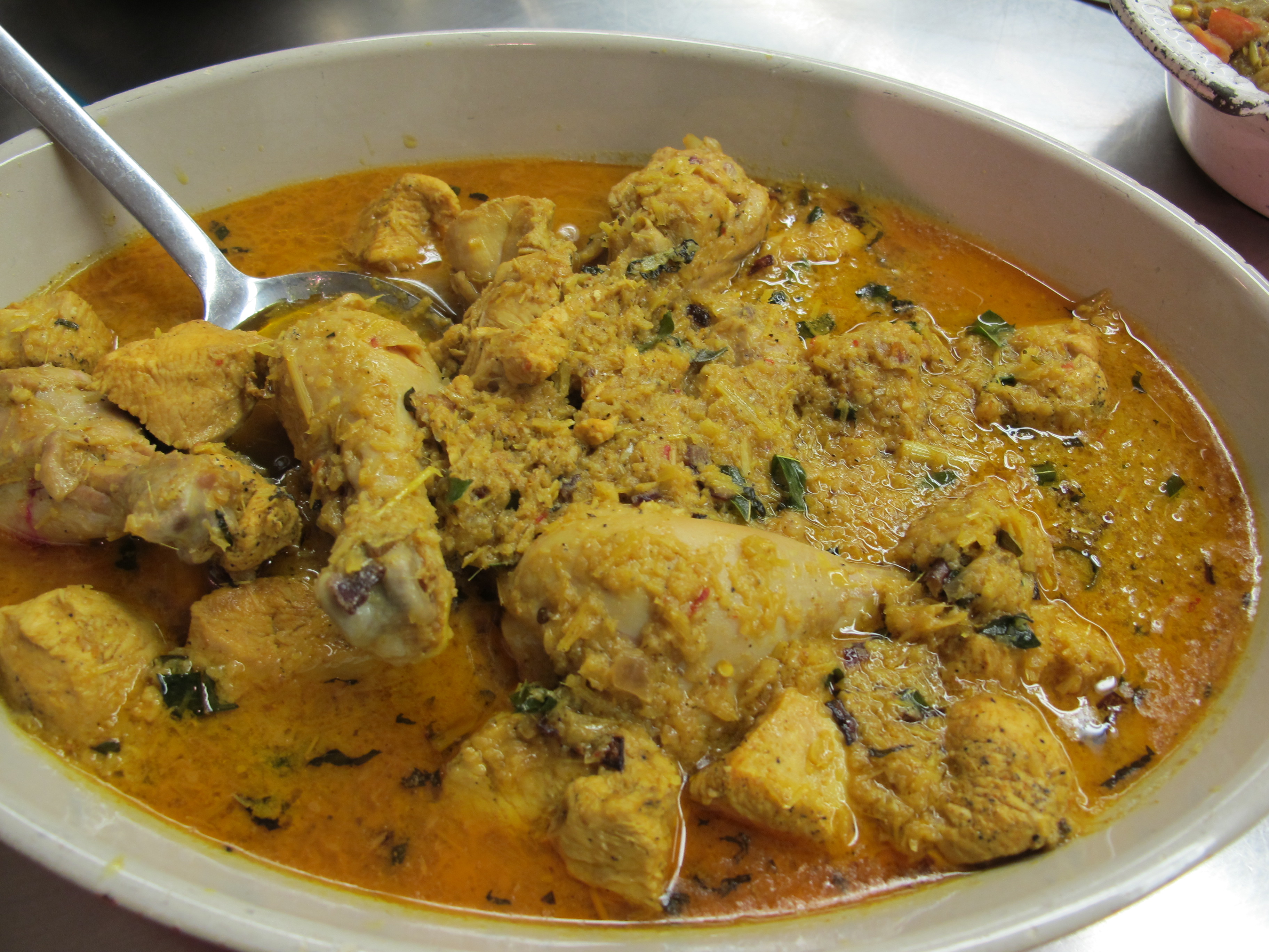 I cannot talk about the different ethnic cuisines of Malaysia without discussing curries, a cooking style common ms ethnic groups. The word “curry” is really a British translation of the Tamil word kari, meaning sauce. In Malaysia, we have a curry that we all enjoy and which reflects its poly-ethnic make up. Malaysian curries usually have Indian and Malay origins, and are prepared from a blend of dry spices and/or wet spice pastes. A number of curries also reflect Chinese influence through the use of soy sauce, star anise, white pepper, ground fennel seeds, and taucheo (preserved soybean paste), while others have Portuguese influence with tomato paste, vinegar, sweet spices, and potatoes.