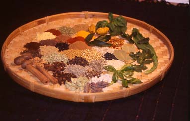 For Indian curries, Ma and Periama would dry roast whole spices and grind them to give a fresher aroma. They fried the whole or ground spices in hot oil for about 30 to 60 seconds before adding chicken, meats, fish, tofu, or vegetables. Ma generally prepared her curries in a metal wok, but sometimes used a clay pot, deep pot, or saucepan.